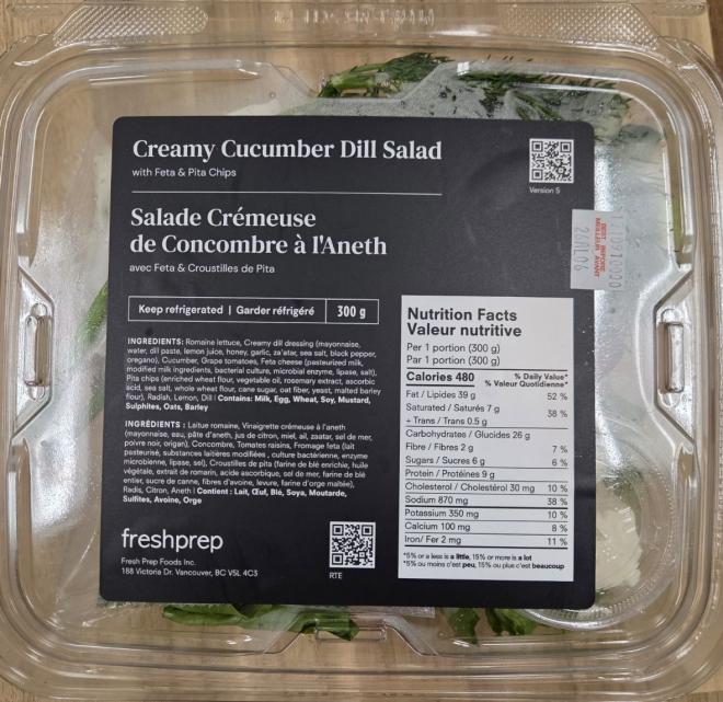 | freshprep | Creamy Cucumber Dill Salad with Feta & Pita Chips | 300 g | None | 26MR31; 26AL01; 26AL02; 26AL03; 26AL04; 26AL05; 26AL06 |