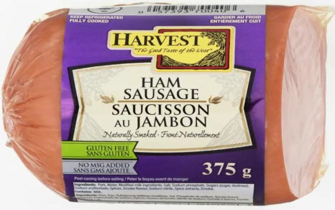 | Harvest | Ham Sausage | 375 g | 0 57393 70040 6 | Best Before 26MR25; 26MR31 |
