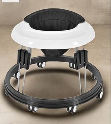 A baby walker is an enclosed activity structure built to support a baby or young child in either a sitting or standing position so that their feet touch the floor. Walkers are mounted on wheels or a device that allows independent horizontal movement.
