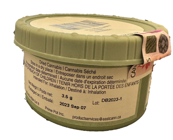| EastCann Banana Mints dried cannabis | DB2023-1 | 3.5g | 2023 Sep 07 | THC: <0.1 mg/g Total THC: 295.57 mg/g CBD: <0.1 mg/g Total CBD: <0.1 mg/g | THC: <0.1 mg/g Total THC: 362.96 mg/g CBD: <0.1 mg/g Total CBD: <0.1 mg/g |