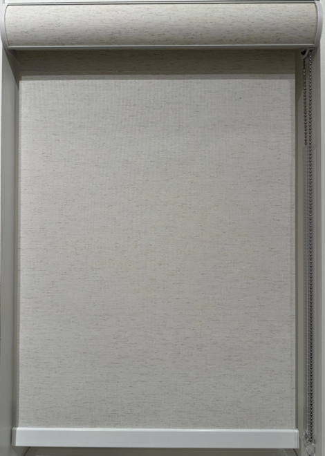 This recall involves fabric roller shades manufactured by Starlight Shutter Inc., available in grey or white. The roller shades contain a fabric cassette headrail system and a plastic hem grip pull system. The shades are equipped with a continuous loop chain lift, and a clear plastic shroud.