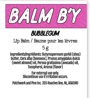 Le présent rappel vise les baumes pour les lèvres aromatisés à la gomme balloune Balm B’Y de Patchwork and Pines Inc. et le savon artisanal à la bière de Dildo Brewing Co. & Museum Sea Salt and Fog.