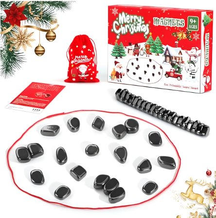 Le présent rappel vise un jeu d’échecs magnétique muni de pierres magnétiques de petite taille et de forme sphérique, indépendantes et séparables présentant un flux magnétique puissant. Les jeux sont vendus dans une boîte bleue sur laquelle figure le mot « Magnetic » ou dans une boîte rouge sur laquelle figurent l’inscription « Merry Christmas » et le mot « magnet ». Le jeu comprend environ 20 aimants indépendants, une ficelle, un petit sac à cordonnet ainsi que des instructions pour jouer et il peut contenir une doublure en éponge en forme de boîte à œufs.
