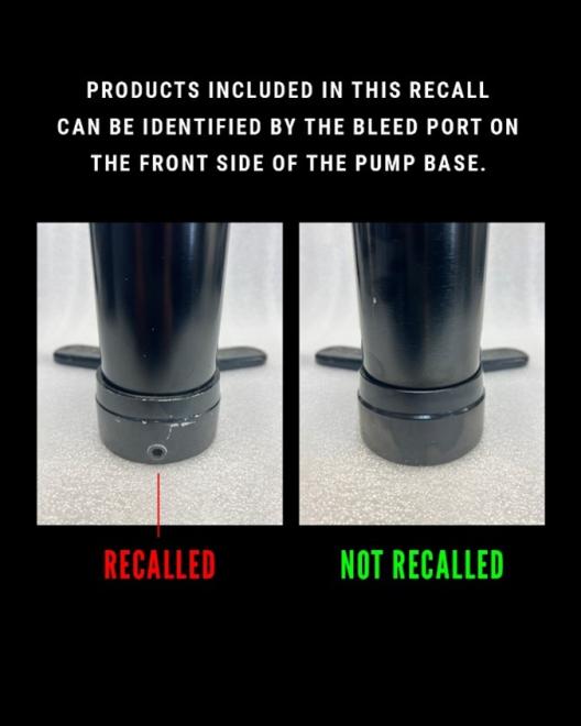 Le présent rappel vise les pompes à pied à pression analogiques et les pompes à pied à pression numériques Lezyne fabriquées entre 2017 et 2021. Les pompes fabriquées après 2021 ne sont pas concernées. Les pompes fabriquées avant 2021 sont équipées d'un orifice de vidange à l'avant de la base, tandis que celles fabriquées après 2021 sont équipées d'un orifice de vidange situé à l'arrière de la base.