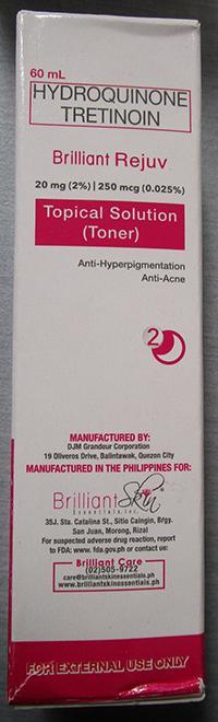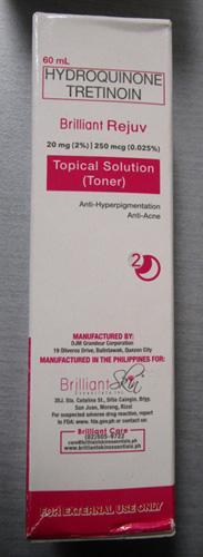 L'étiquette indique la présence de trétinoïne et d'hydroquinone à une concentration de 2 %. |