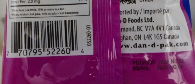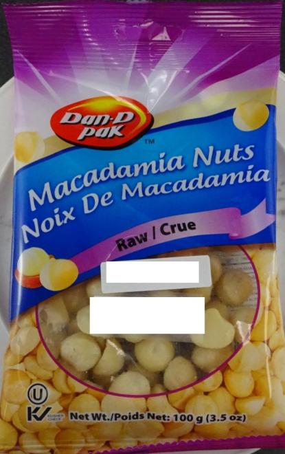| Dan-D Pak | Noix de macadamia crue | 100 g | 7 70795 52260 4 | DDP : 2025.NO.06 MA : 2026.NO.06 |
