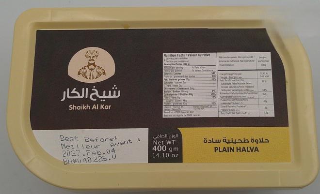 Shaikh Al Kar | « Plain Halva » | 400 g | 6 253011 500647 | Meilleur Avant : « 2027. Feb.04 » BN#040225.V |