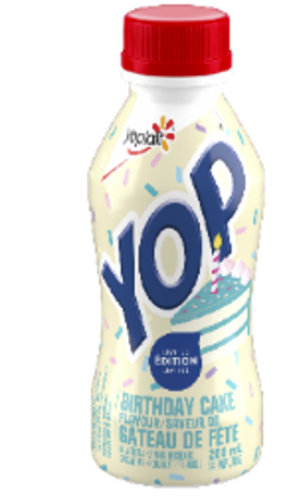 | Yoplait | Yogourt à boire YOP saveur de gâteau de fête | 200 mL | 0 56920 13021 1 | Toutes les dates Meilleur avant jusqu'au 2026JA12, inclusivement |