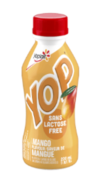 | Yoplait | Yogourt à boire YOP sans lactose saveur de mangue | 200 mL | 0 56920 13172 0 | Toutes les dates Meilleur avant jusqu'au 2026JA12, inclusivement |