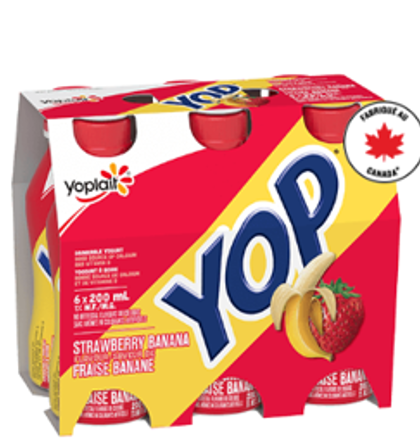 | Yoplait | Yogourt à boire YOP saveur de fraise banane | 6 x 200 mL | 0 56920 13183 6 | Toutes les dates Meilleur avant jusqu'au 2026JA12, inclusivement |