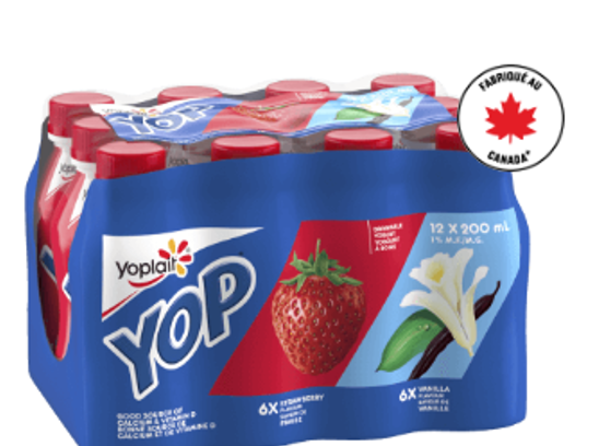 | Yoplait | Yogourt à boire YOP saveur de fraise et saveur de vanille | 12 x 200 mL | 0 56920 13502 5 | Toutes les dates Meilleur avant jusqu'au 03JAN6AY, inclusivement |